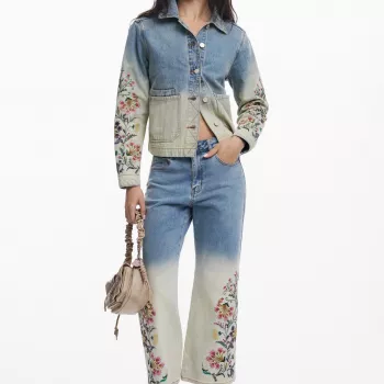 Desigual Women's Blue Floral Cotton Jacket with Buttons