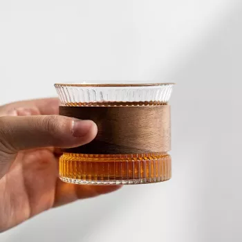 Japanese Hammered Glass Coffee Mug with Walnut Wood Sleeve