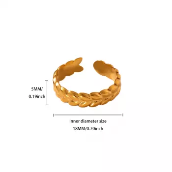 Minimalist Geometric Leaf Ring for Women - 18K Gold Plated Stainless Steel Wheat Band