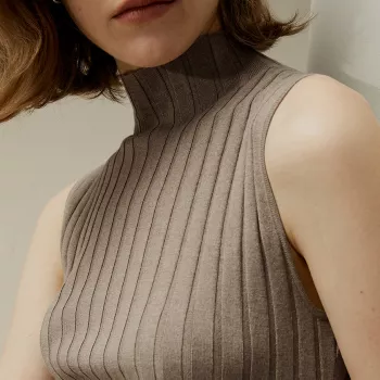 Silk-Cashmere Blend Sleeveless Mock Neck Tank Top