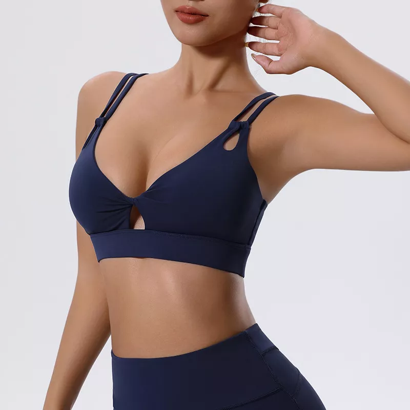 Women's Cross Back Sports Bra with Push-Up Support and Chest Pads