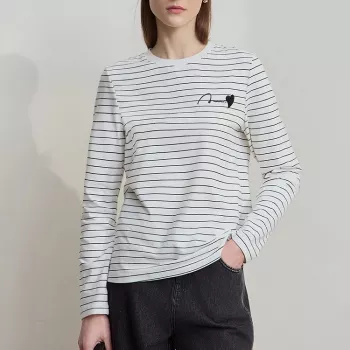 Women’s Spring Striped Embroidered Cotton Long-Sleeve Top